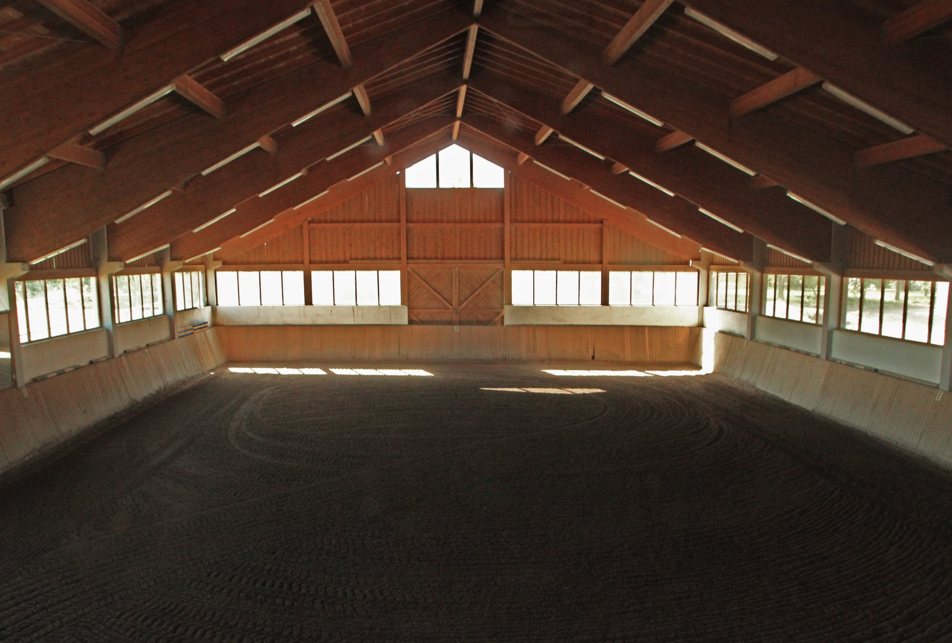 Seit September 2020 galoppieren die Pferde auf weichem Mineralsand mit feinstem Holzspänen unter ihren Hufen. In der geräumigen und gepflegten Reithalle, gibt es genügend Platz um Stau, auch im Winter, zu vermeiden. Gut Beleuchtet bietet die Halle für Abende und kurze Tage im Winter einen gemütlichen Ritt.